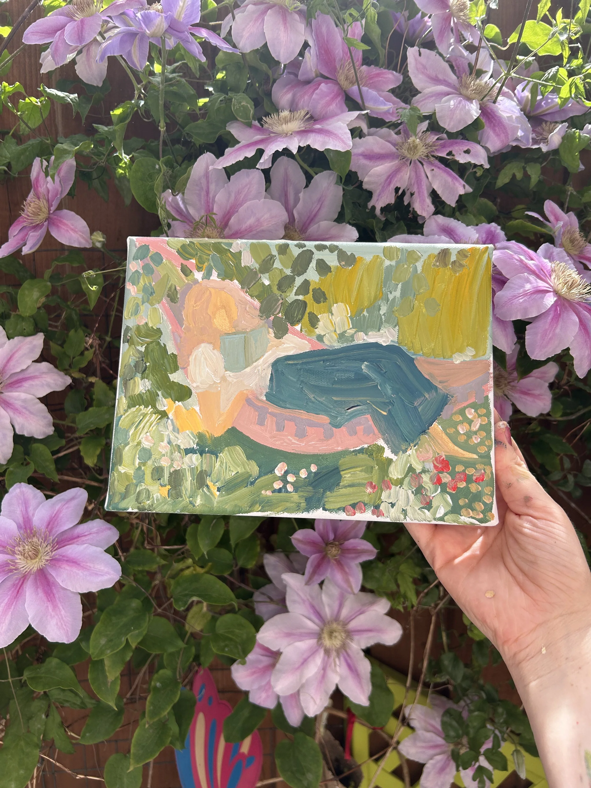 Online Studio A selection of small - medium original paintings on canvas from Laura Gee’s London studio. Butterfly Garden Sale Fabrics in Marrakech SOLD Bloomsbury Blooms Sale Love & Joy - Abundance in a vase Sale Morning Table SOLD Messenger of hope - blue sky Sale Learning To Relax Sale Resting woman Sale Playful Messenger of Hope - Acrylic Painting Sale Rest & Relax Sale Fruit Dove i - Original Painting Sale New Beginnings - Original Painting SOLD Fruit Dove ii - original painting Sale Love and Support - Birds Acrylic Painting Sale 'My Favourite Things - Pink & Green' SOLD Spring's Tiny Wonders Abstract Painting Sale The Garden is Singing Sale The Garden is Buzzing Sale 'My favourite Things' - Red & Pink. Sale Colourful Fruit Stall - Morocco Sale Moroccan Garden - mini SOLD Jardin Majorelle Mini SOLD Fruit Stall - Marrakech Sale Mini Fruit Stall - Marrakech SOLD